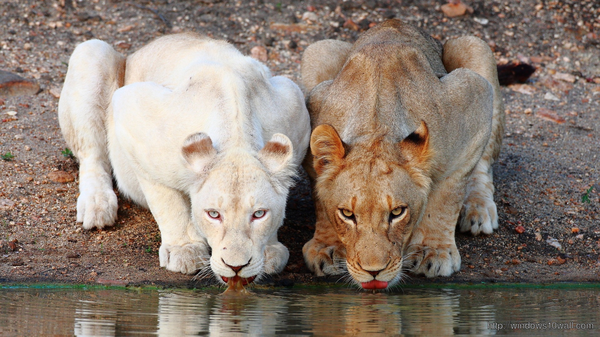 Home » Animals » Lions Drinking Water Wallpaper