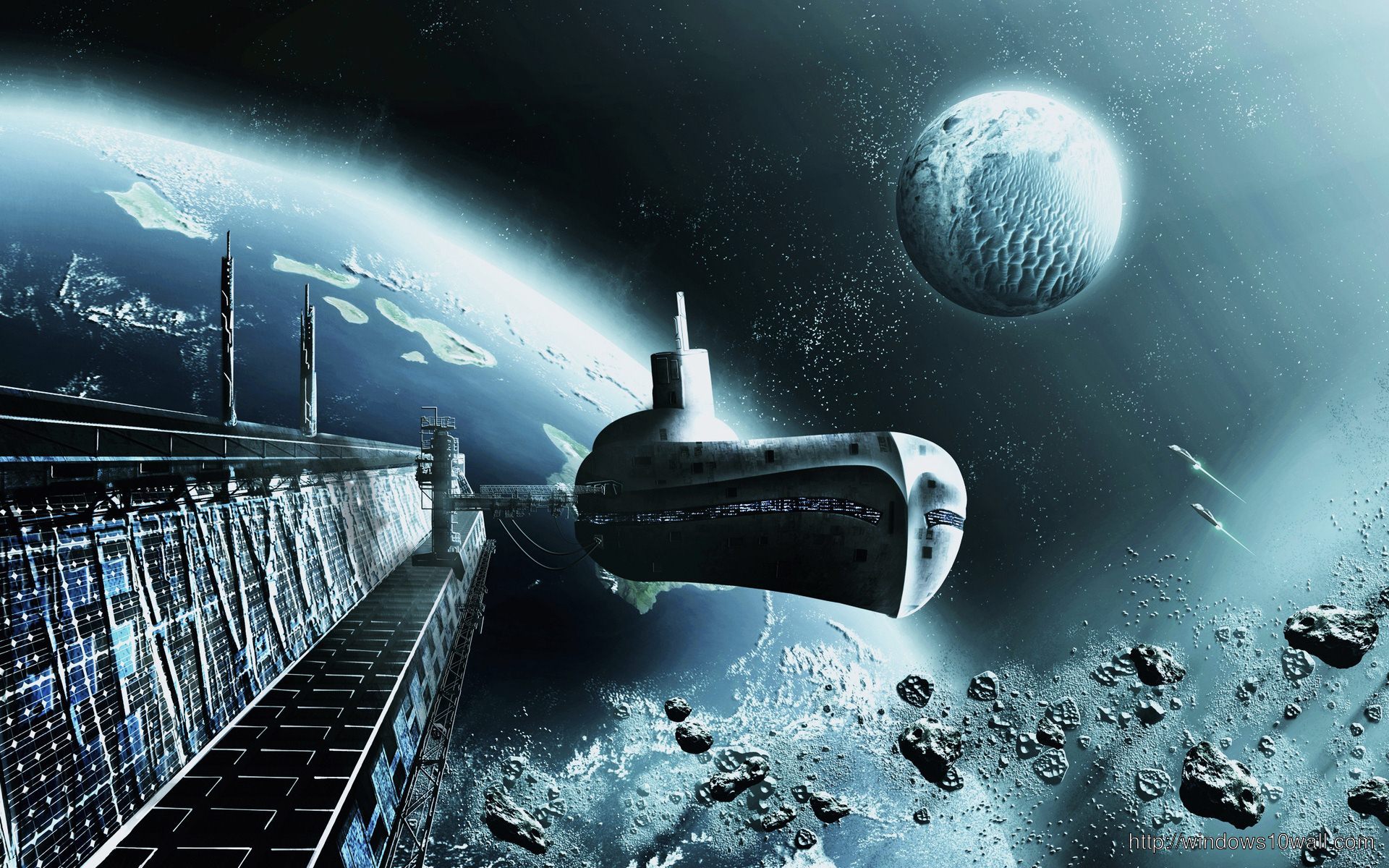 Orbital Spaceship Background Wallpaper